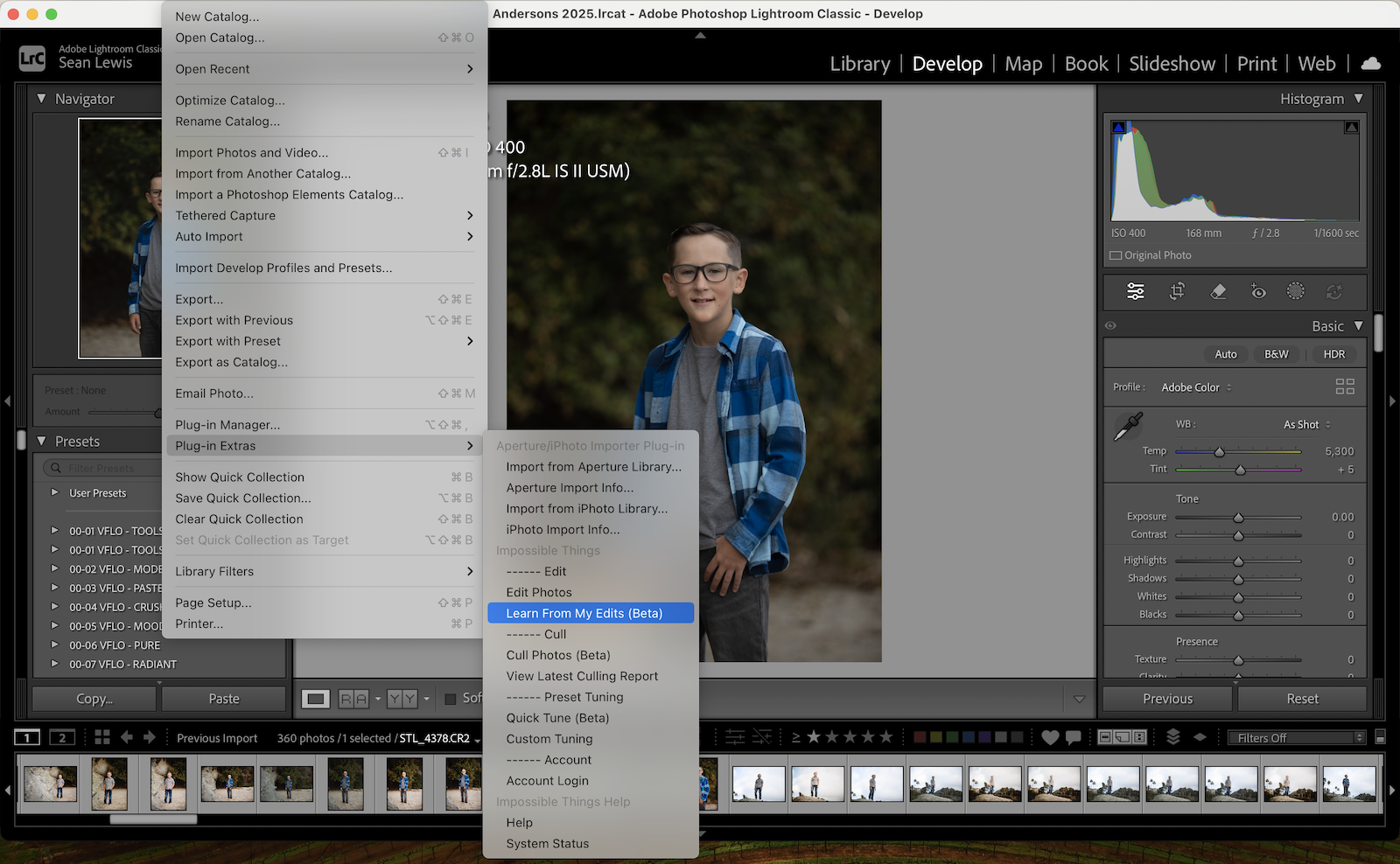Instead of applying the same look to every image, Learn From My Edits watches what you do. Whether you’re adjusting exposure, tweaking contrast, shifting white balance, or refining skin tones, the plug-in pays attention. It uses that information to inform future edits, getting closer to your style the more you use it.